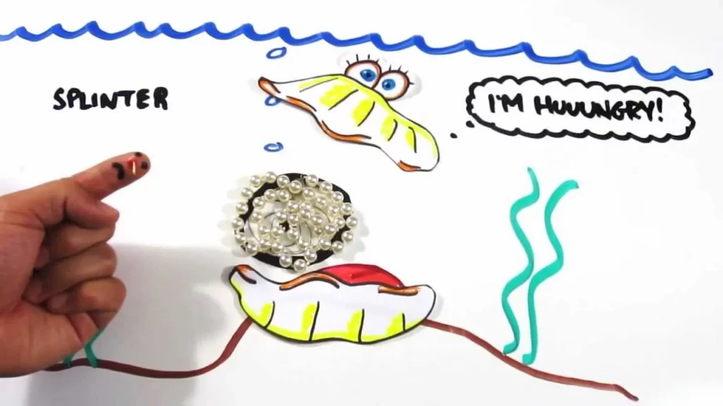 The lesson explains how pearls are created by oysters, which are mollusks that produce pearls as a defense mechanism against intruders like sand or parasites. When an object enters the oyster’s shell, it is coated with layers of calcium carbonate, eventually forming a pearl over time. The lesson also distinguishes between natural pearls, which form spontaneously, and cultured pearls, which are created with human assistance, and highlights the variety of colors that pearls can come in.
