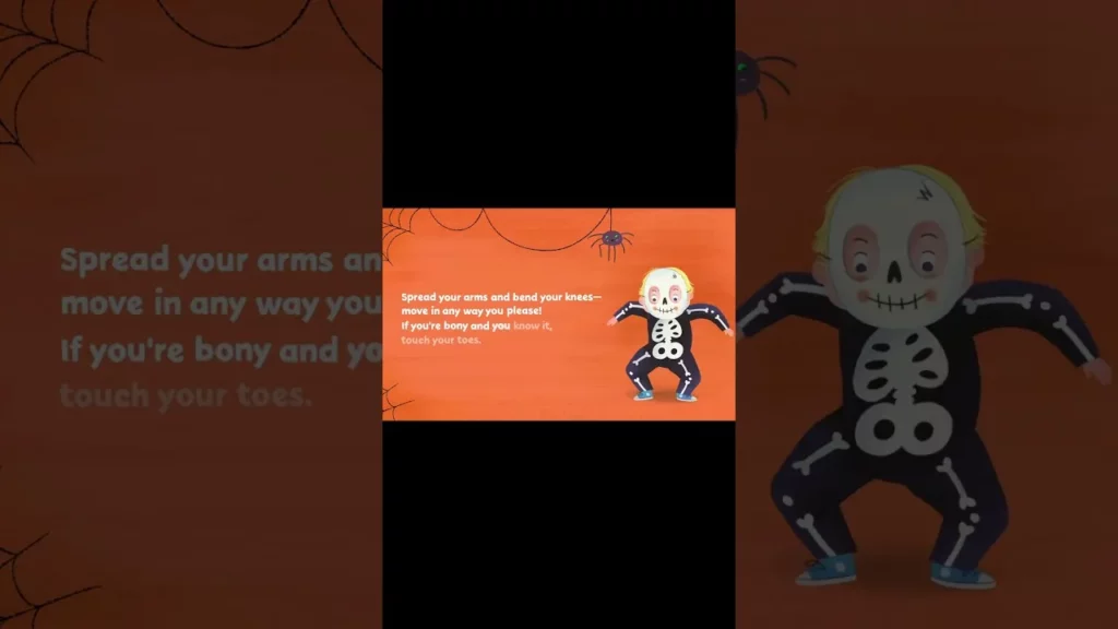 In the “Halloween Fun Song” lesson, children are encouraged to engage in playful movement and creativity through a fun Halloween-themed song. They pretend to be skeletons and monsters, using their bodies to express silliness and spookiness while dancing and singing along. The lesson emphasizes imagination and the joy of movement, allowing kids to create their own dance moves and enjoy the festive spirit of Halloween.