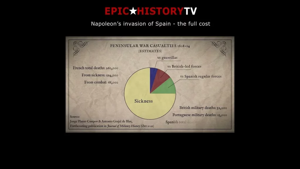Napoleon’s invasion of Spain led to the Peninsular War, resulting in a staggering human cost of approximately 260,000 French lives, primarily due to sickness, alongside significant casualties for British and Portuguese forces, and an estimated half a million Spanish civilians. This campaign, driven by Napoleon’s overconfidence and misjudgment of Spanish resistance, drained French resources and weakened his control over Europe. The conflict serves as a cautionary tale about the importance of understanding cultural and political dynamics in military strategy and the profound human toll of war.